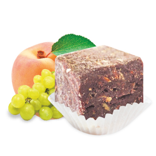Состав:виноградный сок, патока, сахар, изюм, курага, вишневое пюре, крахмал кукурузный, фундук, миндаль, арахис, кукурузная мука, гибискус, кокос, гвоздика, кардамон, агар-агар.