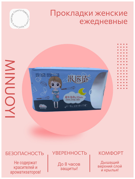 Совместные покупки Нижний Тагил Косметика и парфюмерия Уход за телом — Прокладки гигиенические ночные MINUOYI 410mm (5 + капель, 4 шт)