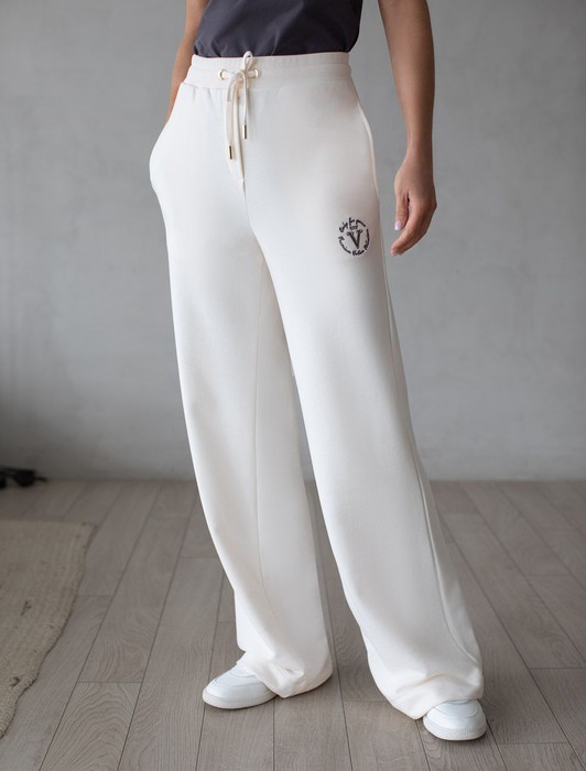 Состав: 80%Хлопок 20%ПЭ Параметры модели на первом фото: Рост 172, бюст 88, талия 64, бедра 88Брюки выполнены из премиального футера трехнитки без начеса. Модель дополнена эластичным поясом на резинке и хлопковым шнурком с золотистой фурнитурой. По бокам два кармана. Наличие эластана в составе гарантирует формоустойчивость и износостойкость изделия. Изделие сочетается в костюме с худи D49.054