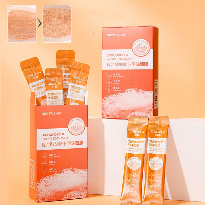 Совместные покупки Нижний Тагил Косметика и парфюмерия Прочий макияж — Пузырьковая маска для лица с экстрактом МОРКОВИ Beotua, НАБОР 12 ШТ. по 4 мл.