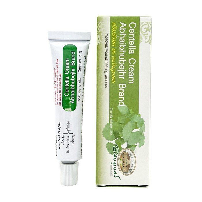 Крем на основе центеллы азиатской от тайского производителя Abhaibhubejhr стимулирует кожу к быстрому заживлению ран, порезов и царапин, способствует регенерации клеток кожи, значительно ускоряет процесс рубцевания тканей, избавляет кожу от высыпаний, устраняет шрамы различной этиологии, эффективно борется против бактерий.В креме содержится 7% экстракта центеллы азиатской., Ранозаживляющий крем — полностью натуральный продукт, не содержит химических веществ, искусственных добавок и красителей, что позволяет использовать его даже для самой чувствительной кожи., Центелла азиатская (Centella asiatica, щитолистник, готу кола, тигровая трава) – это ползучее травянистое влаголюбивое растение, широко распространенное в Индии, Индонезии, странах Юго-Восточной Азии и в Северной Австралии. Ее свежие ярко-зеленые листья издавна употребляли в пищу. А в высушенном и измельченном виде листья центеллы еще около 3000 лет назад использовали как целебное средство в борьбе против ран, ожогов и воспалений кожи, варикозных язв, при повышенной тревожности и возбудимости.Центелла азиатская обладает противовоспалительным действием, лечит кожные нарушения (ожоги, порезы), помогает быстро заживлять раны, шрамы., Показания к использованию:, Способ применения: Крем следует наносить тонким слоем 1-2 раза в день на поврежденный участок кожи, или на послеоперационный шрам, или на участок с пигментацией либо с растяжками. Дождаться впитывания. Процедуру повторять ежедневно до полного заживления кожных покровов., Производитель: Таиланд, ABHAI HERB.