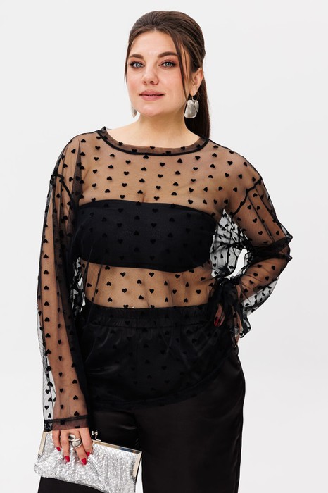 Добавьте нотку игривости в ваш гардероб с этим стильным прозрачным лонгсливом из сетки, с милыми сердечками. Модель выполнена в оверсайз силуэте с прямым кроем и слегка приспущенным плечом, что придает ей расслабленный и модный вид. Круглый вырез горловины добавляет образу легкости и кокетливости.