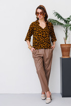 Блузка выполнена из атласа с абстрактным принтом. Застежка на потайную молнию в среднем шве спинки. Горловина округлой формы. Рукав одношовный. Блузка с плечевыми накладками.