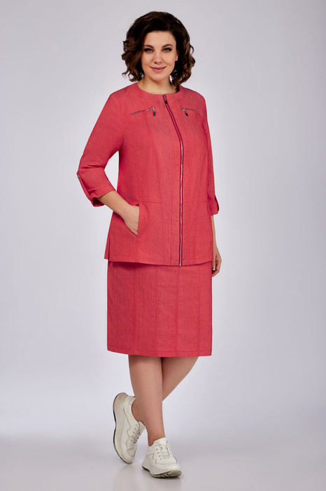 Базовый, классический, джинсовый женский костюм с жакетом и юбкой. Легкая высококачественная ткань, в составе которой хлопок и полиэстер, делает изделие прочным и долговечным. Элегантная и женственная юбка со шлицей сзади имеет полуприлегающий силуэт. По юбке выполнены отделочные строчки на двухигольной машине. Жакет прямого силуэта, с округлой горловиной и функциональной застежкой на молнию по центру; на уровне груди выполнены карманы-обманки с молнией, а в рельефе на уровне талии - функциональные карманы. На жакете прострочены отделочные строчки на двухигольной машине. Классический, стильный костюм подчеркнёт Вашу фигуру, подойдет как для высоких и невысоких. Стильный и современный джинсовый костюм с юбкой сделает Ваш образ модным и элегантным. В этом костюме Вы будете выглядеть безупречно.