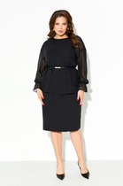 Детали: джемпер полуприлегающего силуэта, спущенная линия плеча, круглый вырез горловины, талия на резинке, застежка на потайную молнию в среднем шве спинки, рукава длинные с манжетами, фигурный низ. Джемпер из трикотажа футер трехнитка с начёсом. Юбка с высокой посадкой на притачном поясе, потайная застежка в боковом шве, трикотажная подкладка.