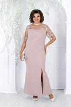 Платье прилегающего силуэта, длиной за колено. С декоративным вырезом по переду. Спинка с талиевыми вытачками и средним швом, в котором обработана застежка на потайную тесьму-*молнию* и шлица. По горловине спинки разрез с застежкой на пуговицу. Платье с нагрудными и талиевыми вытачками и кокеткой из отделочной ткани ( сетка).
