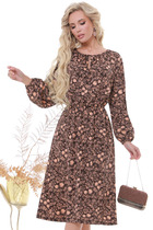Платье женское прямое длиной до середины икры. Изделие изготовлено из натуральной ткани. Рукав короткий, фантазий ной формы. Украшением платья является красивая вышивка. В боковых швах имеются разрезы и функциональные карманы. Это платье можно носить с широким поясом и без него.