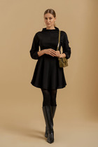Платье мини А-образного силуэта. V-образный вырез горловины. Рукава регланы. Низ изделия и рукава декорированы кружевом. Спереди изделие декорировано пуговицами аналогичного цвета. Классическая модель для создания романтичных образов.