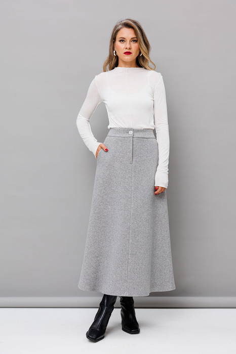 Лаконичная юбка макси — основа базового гардероба. Выполнена из плотной ворсистой ткани на основе вискозы, дышащей и приятной к телу. Отрезной пояс обеспечивает комфортную посадку по фигуре. По переду карманы с наклонным входом. Длина - 90 см