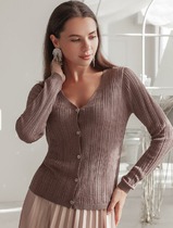 Vilatte Жакет из вискозы тонкой вязки с люрексом D31.133 кофейный