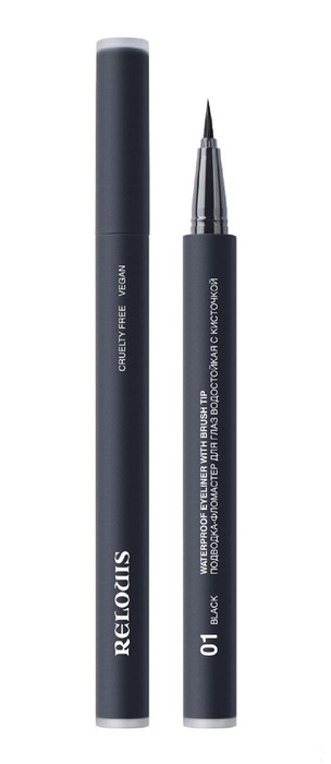 ВОДОСТОЙКАЯ ПОДВОДКА ДЛЯ ГЛАЗ С КИСТОЧКОЙ RELOUIS —WATERPROOF EYELINER WITH BRUSH TIP:два классических оттенка: глубокий черный и насыщенный коричневый, суперстойкость, превосходная цветопередача и равномерная линия с первого нанесения, водостойкая формула, кисть, тончайшие ворсинки которой плотно прилегают друг к другу и позволяют создать идеальную стрелку! Оптимальная жёсткость и упругость кисти – нарисовать стрелки сможет не только профессионал, но и тот, кто только учится!, премиальная упаковка: матовая soft touch поверхность фломастера с прозрачными деталями и инновационный механизм двойного заполнения текстуры — абсолютное эстетическое удовольствие и гарантированное качество.