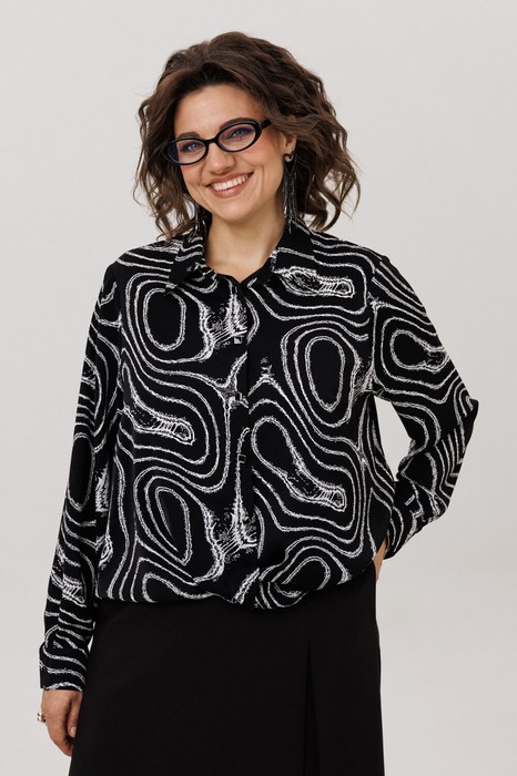 На модели в рубашке цвета «мрамор неро» топ 1664 и юбка-брюки 1783.