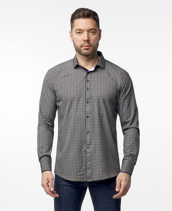 Мужская рубашка полуприталенного кроя, выполнена из комфортной приятной к телу ткани, застегивается на пуговицы.