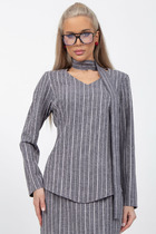 Блузка полуприлегающего силуэта, с втачным одно шовным рукавом, со складкой и манжетой, с застежкой на петлю-пуговицу. Полочка с центральной застежкой на петли-пуговицы и с фигурными подрезами, имитирующими лиф. Спинка с рельефами и шнуровкой от рельефов. Воротник рубашечный отложной на стойке. Спинка и полочка с фигурным низом.