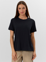 Блузка женская прямого силуэта из замшевой ткани длиной за линию бедер. По переду блузки отрезные кокетки и нагрудные накладные карманы с клапаном, застегивающиеся на кнопку. Спинка с отрезной кокеткой и встречной складкой. Линия плеча спущена. Рукав рубашечный втачной по низу с 2 –мя складками и отрезной манжетой, застегивающейся на кнопку. Воротник втачной рубашечный. Линия низа имеет фигурную форму. Воротник, кокетки, карманы, линия проймы отстрочены отделочными строчками. Застежка на кнопки центральная.