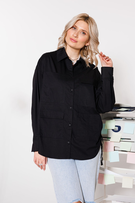 Блузка в стиле милитари – базовая вещь для гардероба. По переду расположены накладные карманы с клапанами и без, и разной ширины, данная «ассиметрия» визуально будет стройнить вашу фигуру. По спинке расположена кокетка со складками, для удобства движения рук. Застежка спереди на петли-пуговицы. По боковому расположена кулиса, вы можете затянуть вверх шнурочки, завязать их, и у вас будет новый силуэт рубашки. Это лучшая рубашка! Она будет актуальна еще несколько сезонов, а благодаря премиальному хлопку, она не выстирается, не скатается и долго прослужит вам. Длина изделия – 75 см.