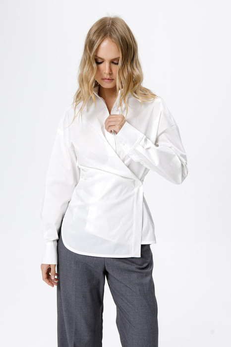 Асимметричная приталенная рубашка из хлопковой ткани.