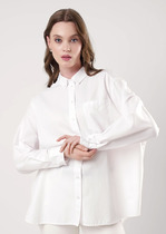Детали: рубашка прямого силуэта, застежка на петли и пуговицы, длинные рукава с притачными манжетами.