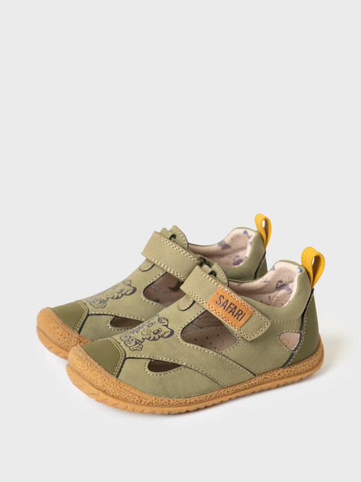 Сандалии для мальчика с закрытой носочной и пяточной частью выполнены из искусственного нубука. Удобный ремень с липучкой позволяют регулировать обувь на любой подъем и позволяют ребенку обуваться самостоятельно. Подкладка выполнена из принтованной натуральной свиной кожи. Стелька выполнена из натуральной кожи и имеет анатомический элемент для поддержания свода стопы в правильном положении. Подошва из ТПР гибкая и нескользкая. Парфюмированная подошва имеет запах кокоса.