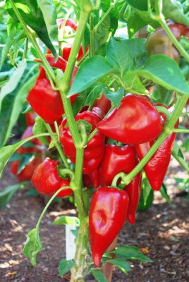 Крупный, конусообразный плод с толстой стенкой. Подходит для выращивания в теплицах и открытом грунте. В стадии биологической зрелости плоды светло-зеленого цвета. В стадии технической спелости блестящего красного цвета. Для консервирования хорошо подходят плоды любого цвета.