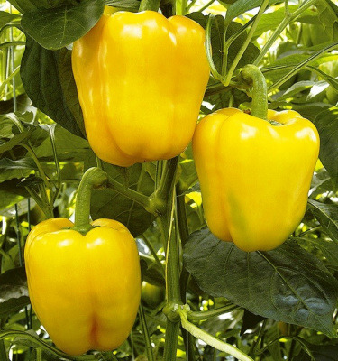 Крупный, среднего размера плод с толстой стенкой. Подходит для выращивания в теплицах и открытом грунте. В стадии биологической зрелости зеленого цвета. В стадии технической спелости привлекательного жёлтого цвета.