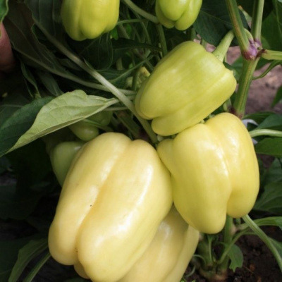 Крупный, среднего размера плод с толстой стенкой. Подходит для выращивания в теплицах и открытом грунте. В стадии биологической зрелости белого цвета в стадии технической зрелости плоды имеют привлекательный яркий красный цвет. Собирать лучше красным, тогда он особенно хорош для консервирования.
