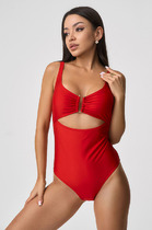 Слитный купальник на подкладе из эластичного полотна с мягкой формованной чашкой soft bra. Мягкая чашка с формованными съемными вкладышами. Без каркасов и без боковых корсетных вставок.Спереди декоративная металлическая вставка. Бретели не съемные и не регулируемые. Без застежки. Тонкие резинки, подгиб и плоский шов по срезу ножек
