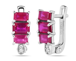 — Серьги, 2 рубин корунд октагон 4х6 мм/1.55 ct. , 4 рубин корунд октагон 3х5 мм/1