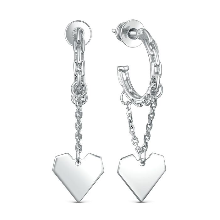 Совместные покупки Нижний Тагил Ювелирные украшения и бижутерия Серьги — Серьги цепи из серебра родированные - Сердца 925 пробы 220-10-023р