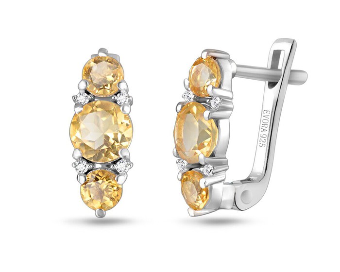 Серьги, арт.655238 Серебро Серебро 925, 3,32 гр., цитрин