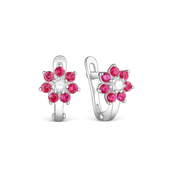 Совместные покупки Нижний Тагил Ювелирные украшения и бижутерия Серьги — Серьги детские Цветочки из серебра с фианитами родированные 925 пробы 402111-033
