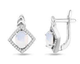 Серьги из серебра с нат. шпинелью и фианитами родированные