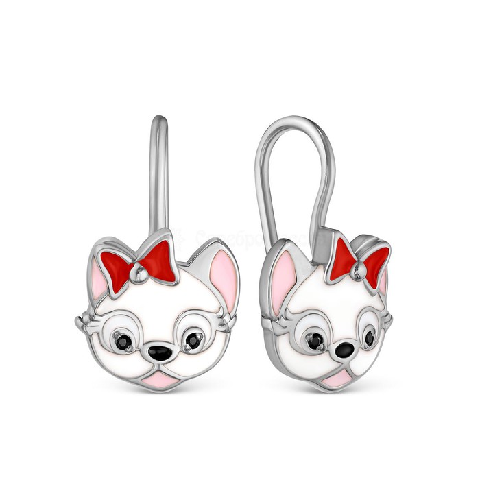 Совместные покупки Нижний Тагил Детские аксессуары Украшения, бижутерия — Серьги детские из серебра с эмалью и фианитами родированные - Собачки 925 пробы