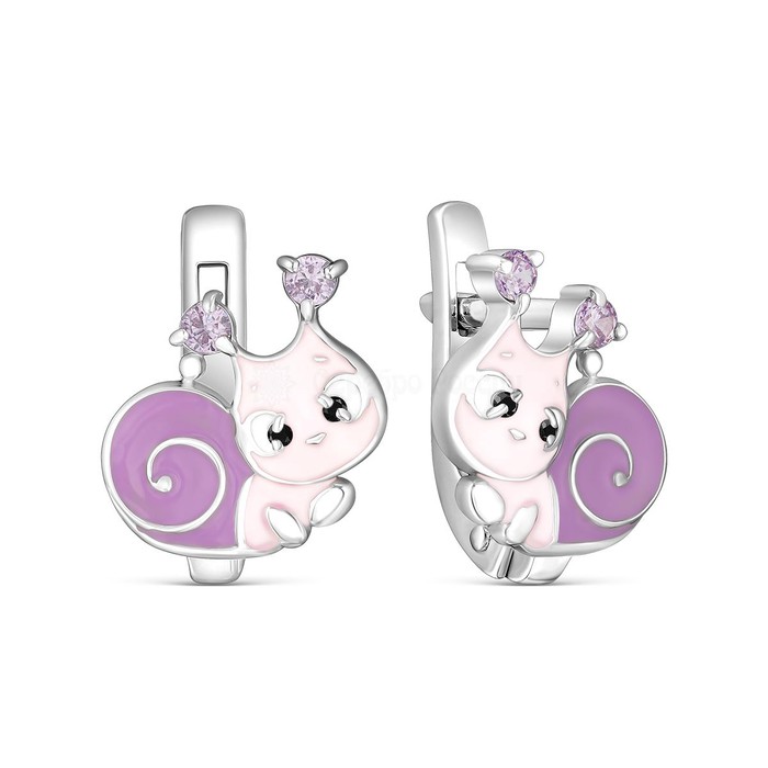 Серьги детские из серебра с эмалью и фианитами родированные - Улитки
