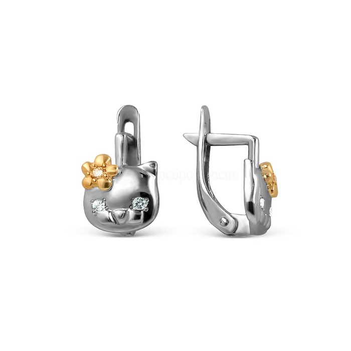 Совместные покупки Нижний Тагил Детские аксессуары Украшения, бижутерия — Серьги детские из серебра с фианитами и позолотой родированные - Кошки