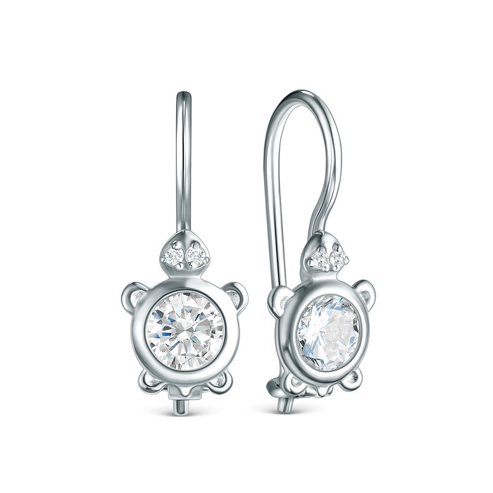 — Серьги детские из серебра с фианитами родированные - Черепашки S2180551010