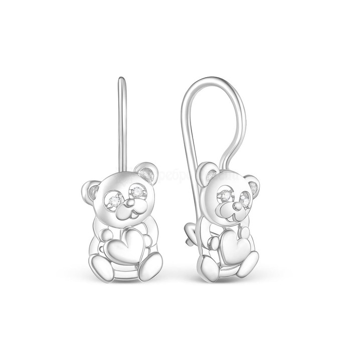 Совместные покупки Нижний Тагил Детские аксессуары Украшения, бижутерия — Серьги детские из серебра с фианитами родированные - Медвежата с сердцем 925 про