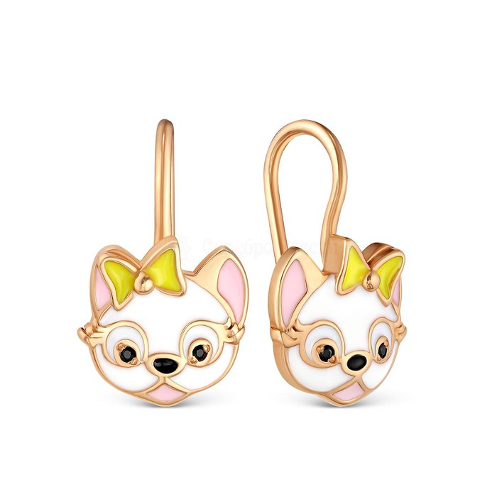 Серьги детские из золочёного серебра с эмалью и фианитами - Собачки