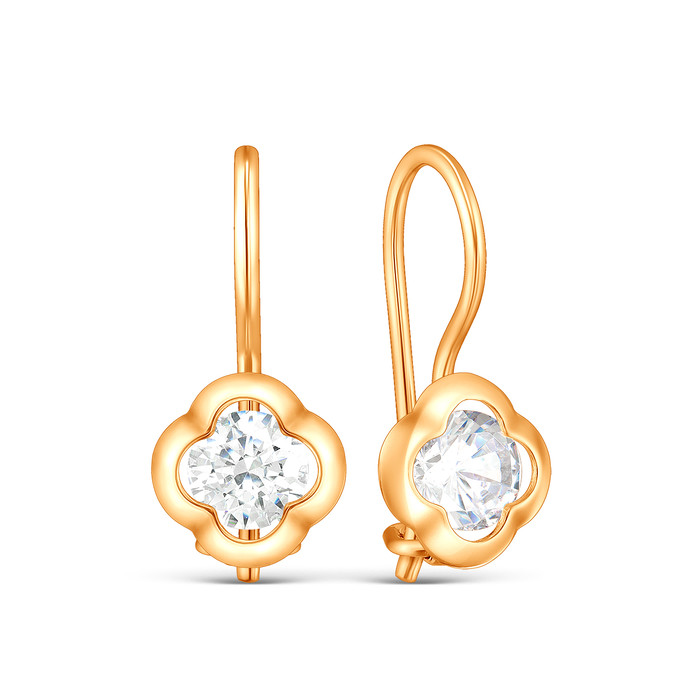 Совместные покупки Нижний Тагил Ювелирные украшения и бижутерия Серьги — Серьги детские из золочёного серебра с фианитами - Клевер 925 пробы S2180341010з