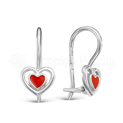 Серьги детские на петле из серебра с эмалью родированные - Сердечки 925 пробы 21
