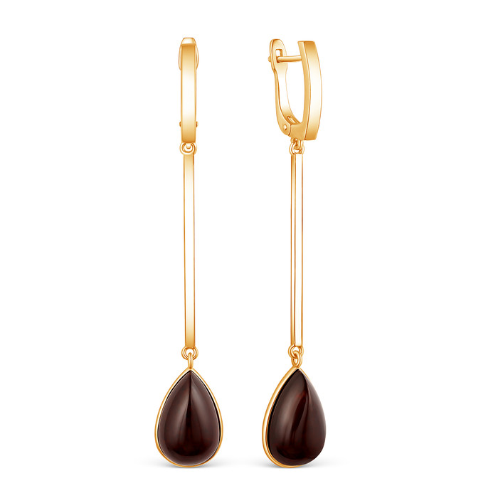 Серьги длинные из золочёного серебра с натуральным янтарём 925 пробы 2200411201