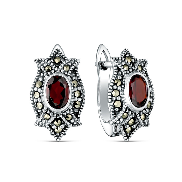 Совместные покупки Нижний Тагил Ювелирные украшения и бижутерия Серьги — Серьги из чернёного серебра с натуральным гранатом и марказитами 925 пробы HE030