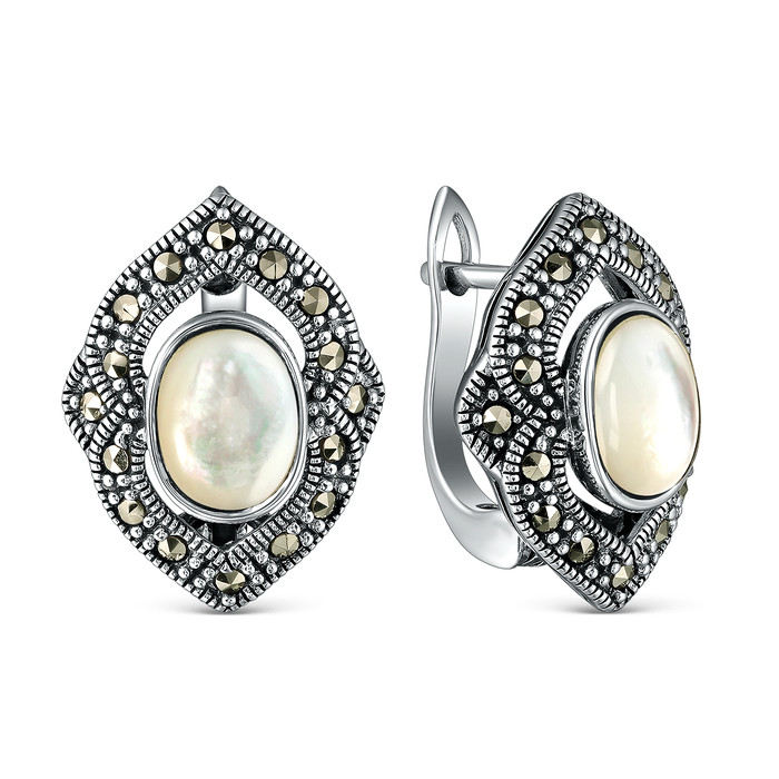 Совместные покупки Нижний Тагил Ювелирные украшения и бижутерия Серьги — Серьги из чернёного серебра с перламутром и марказитами HR0335-MP-LK