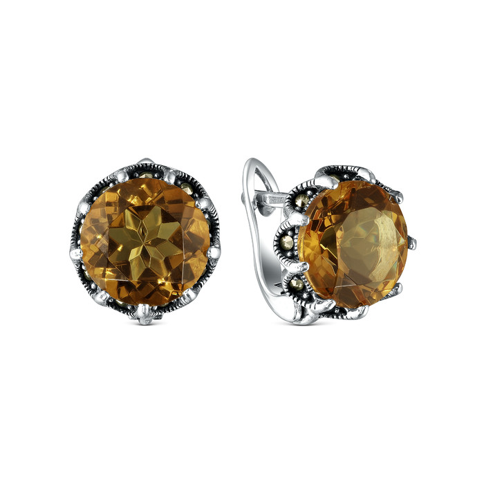 Серьги из чернёного серебра с султанитом и марказитами 925 пробы HE1369-ZN-LK