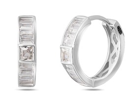 Серьги с фианитом родированные серебро 925*