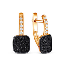 Серьги из золочёного серебра с натуральной шпинелью, фианитами и родированием 92