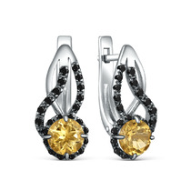 Серьги из серебра с натуральным цитрином и натуральной шпинелью родированные 925