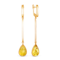 Серьги длинные из золочёного серебра с натуральным янтарём 925 пробы 2200411204