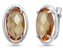 Серьги из серебра с цитрином и кубическим цирконием родированные 925 пробы GTE-2