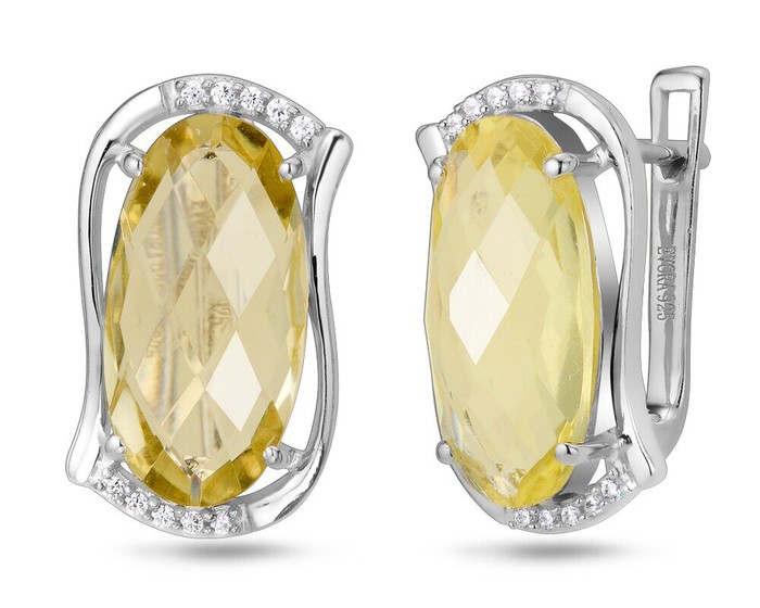 Серьги, арт.645486 Серебро Серебро 925, 6,1 гр., лимонный топаз